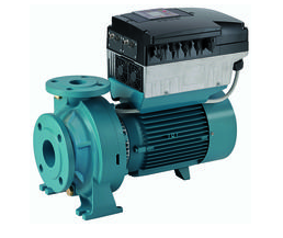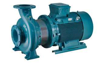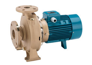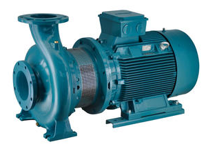 Close-coupled centrifugal pumps; electric motor with extended shaft directly connected to the pump up to 30 kW, new bracket construction for standard motors (stub-shaft construction) from 37 to 75 kW with integrated thrust bearing.